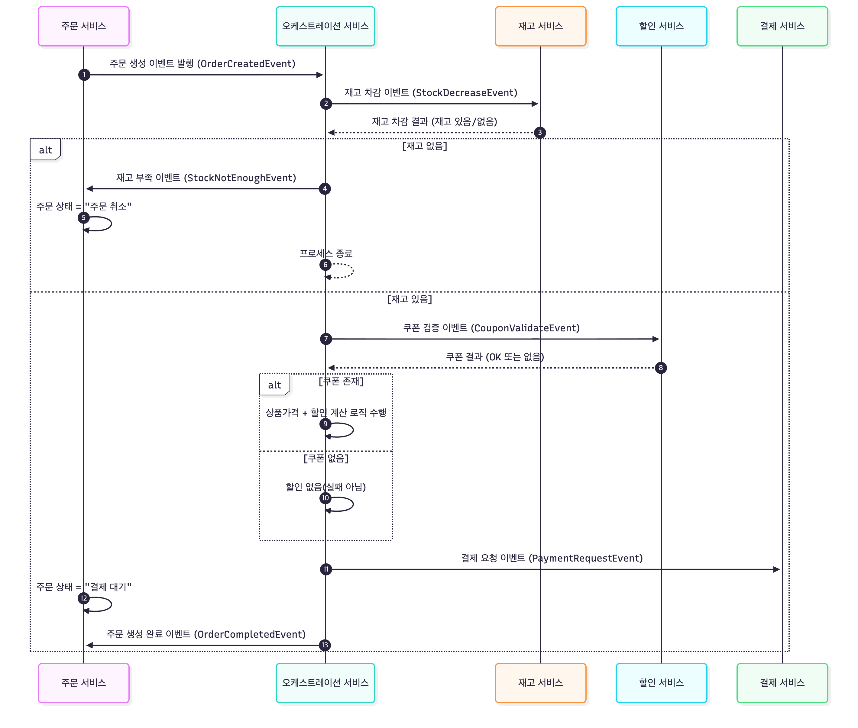 1. 주문 생성 요청 -> 오케스트레이터로 전달
